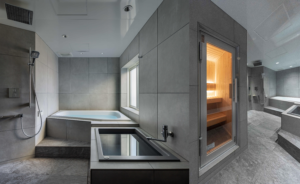 バンクチュールでは浴室内にサウナ、浴室に温浴用と水風呂用の浴槽をそれぞれ設置するプランが人気です。